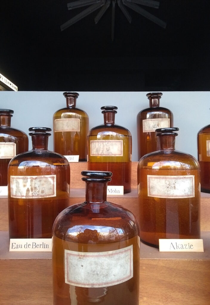 Nach einer anderthalbjährigen Pause wagten im vergangenen Jahr zwei neue Betreiber den behutsamen Wiederbeginn, so dass im Keller in guter Tradition weiterhin Düfte gemischt, abgefüllt und dann oben im Laden nach Gewicht verkauft werden. Schön ist, dass es neben dem Probiertropfer auch immer noch die Apothekerflaschen aus den Dreißiger Jahren gibt – seit Jahrzehnten Blickfang und Augenweide der Auslage. Der Kampf gegen die ästhetischen Zumutungen wird nicht nur an der olfaktorischen Front geführt!