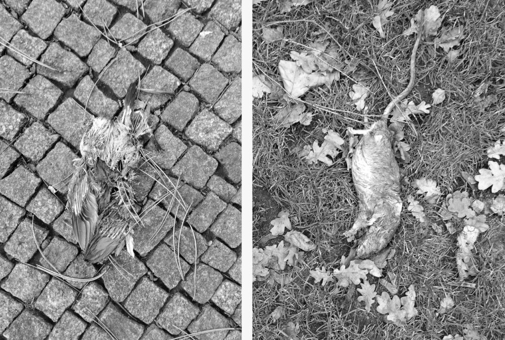 Jetzt, wo der Schnee geschmolzen ist, sieht man wieder die toten Tiere auf den Gehwegen und in den Parks. Mal schauen, wer nun schneller ist – die Stadtreinigung, die Krähen oder die Ratten.