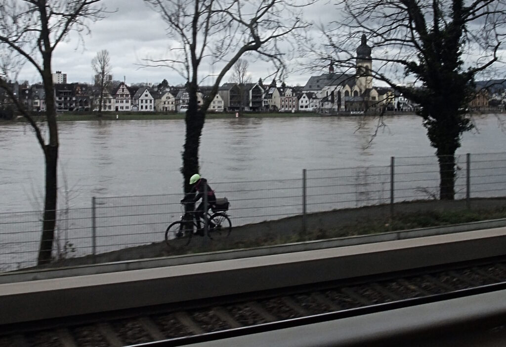 Der Rheinpegel ist gestiegen und die Lahn strömt weiter eifrig zu, weshalb plötzlich etliche Radwege ersatzlos gesperrt und sogar die Umleitunghinweise wieder durchgestrichen waren. Absurd. Aber es fuhren eh nur 2 bis 3 Personen Rad auf 100 km.