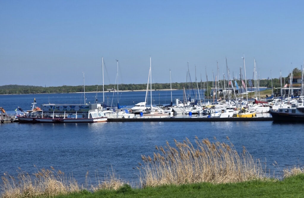 Am Zörbigker Hafen herrscht reger Betrieb. Die Bootsbesatzungen machen klar Schiff. Ein Sportler kommt gerade mit seinem Segelboot auf dem Anhänger aus dem Winterquartier. Ich überhole grüßend meine Nachbarn, die am Ufer einen Sonntagsspaziergang machen. Ich würde gerne etwas trinken, aber alle drei Ausschänke, an denen ich am See vorbeilaufe, sind geschlossen. Also geht’s ohne Pause zurück.
