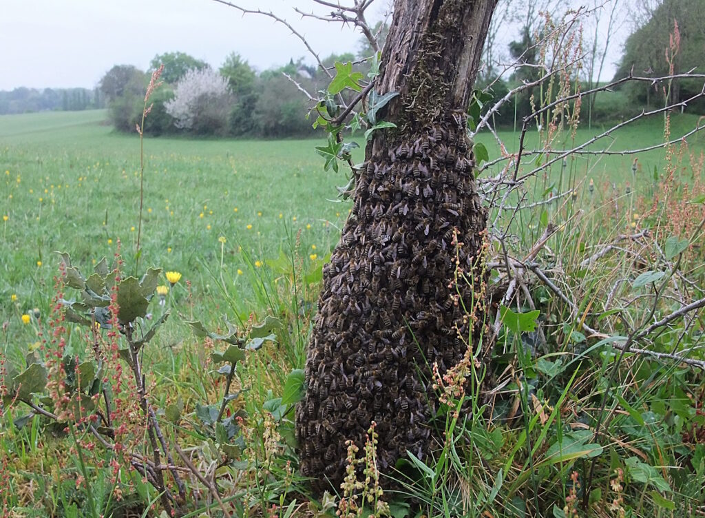 Gestern schwebte überm Garten eine Bienenwolke – ein ungeheures Geräusch! Zum Glück kannten wir das alle schon, bekamen also keine Panik. Der Schwarm formierte sich an einem Baumstamm im Kindergarten gegenüber. Während tausende Immen die Astdicke verdoppelten, schwirrten die anderen paar tausend kreisend in der Luft – wie die Elektronen um den Kern, erratisch aber in definierter Distanz. Wir beobachteten das aus fünf Metern – mit ausführlichen Erklärungen aus der Bienen AG der Klasse 5: Die Tiere sind gerade mit sich selbst und ihrer neuen Staatenbildung beschäftigt. Wir spekulierten, ob der Schwarm die Nacht auf dem Kinderspielplatz verbringen und dann am Morgen Kreischanfälle auslösen würde. Aber wie ein Spuk war nach einer Viertelstunde alles vorbei – das Volk hatte für seine junge Königin einen passenden Ort gefunden.