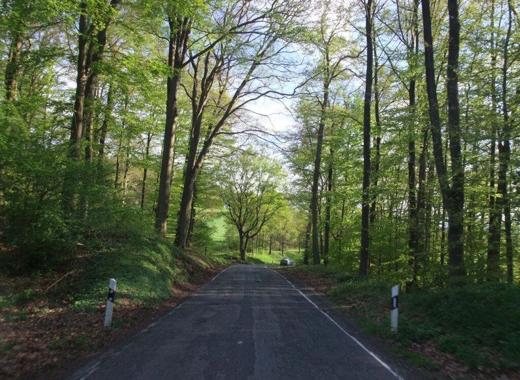 Viele Kleinstädte auf der Strecke sind anatolische Gewerbeoasen geworden, so Ransbach-Baumbach. Der ursprüngliche Einzelhandel ist aus der Innenstadt komplett verschwunden, die Türken fangen den totalen Leerstand auf und renovieren die vor sich hinrottenden Häuser. Im Ortskern sind nach acht Monaten Großbaustelle endlich 400 Meter Straße geteert. Zu Beginn der Arbeiten wurde eine alte Keramikfabrik gesprengt – einst ein stattliches Gebäude, jetzt ein übergrünender Schutthaufen. Im Vorbeifahren freuen wir uns über jedes Haus, das überleben wird. Am Ortsende umkreist eine blonde Frau in den besten Jahren mit dem Rasentraktor den makellosen, sorgfältig eingezäunten Bungalow. Nur hundert Meter weiter am Waldrand ein Altbau der 1950er, von Büschen und Bäumen umringt, auf der wilden Wiese Schaukel, Plastiktraktor und Trampolin.