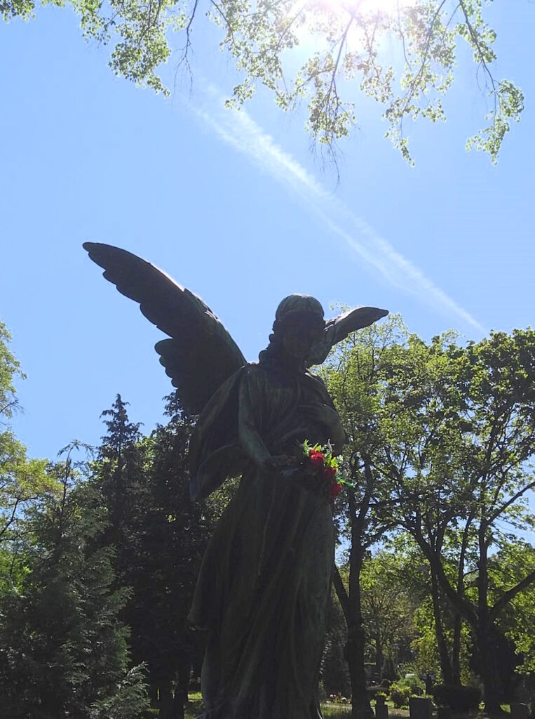 Vom Garten geht es überganglos auf den im Jahr 1844 eingeweihten St.-Elisabeth-Friedhof. Die dort 1892 errichtete Versöhnungskirche befand sich nach dem Mauerbau mitten auf dem Todesstreifen. Da sie für die Grenzer ein toter Winkel war, wurde sie 1985 gesprengt. Große Wut und tiefe Trauer in beiden Teilen der Stadt – ein weiterer Sargnagel für den dahinsiechenden sozialistischen Staat. Auf und aus den Trümmern der gesprengten Kirche wurde 2000 die Kapelle der Versöhnung errichtet – ein Ort des Gedenkens und Innehaltens, ein Ort der Demut. Ich freue mich, dass ich dort nun einfach so herumgehen und mich an der schönen Friedhofsanlage erfreuen kann. An einigen der Gräber hocken Frauen und zuppeln an Pflanzen herum, harken und gießen. Jemand hat einem der Engel ein paar Rosen in die Hände gelegt. Blauer Himmel, eine wärmende Sonne. Ein entspannter Nachmittag in einem Land, das nicht auf die schießt, die es verlassen möchten, weil sie es dort nicht mehr aushalten.