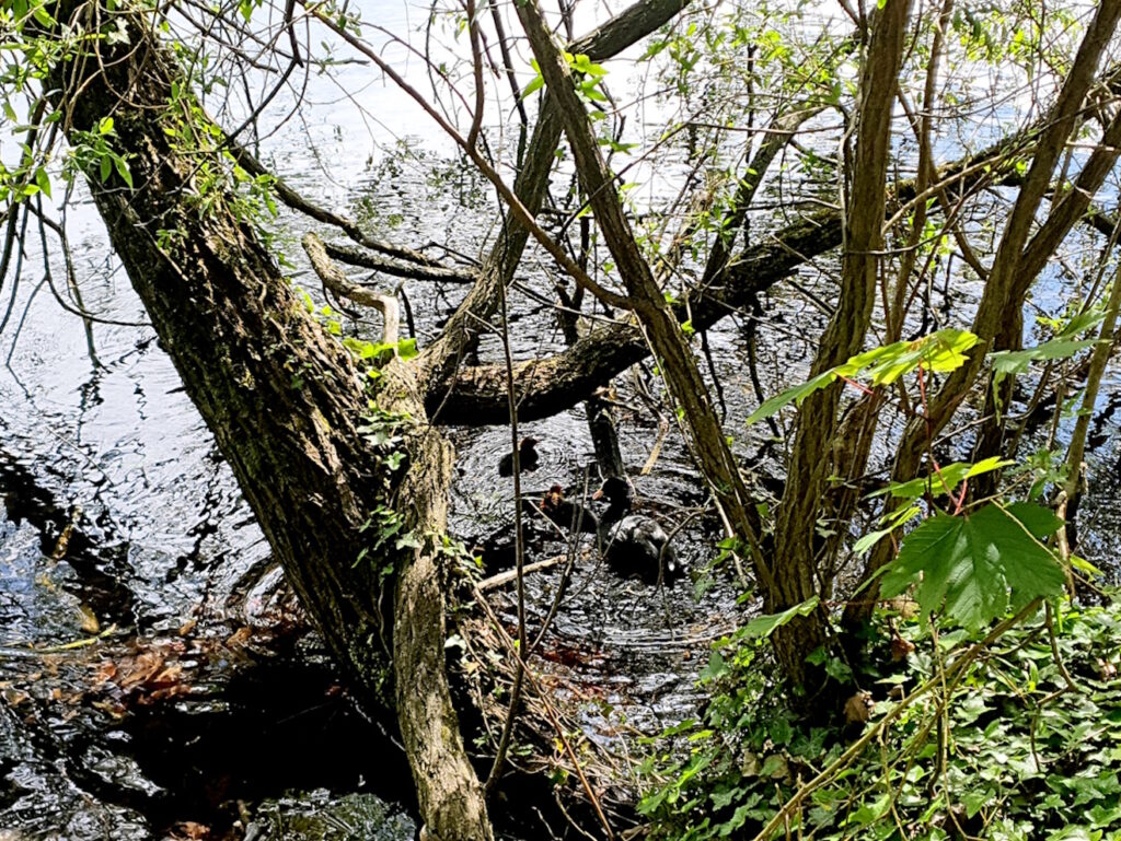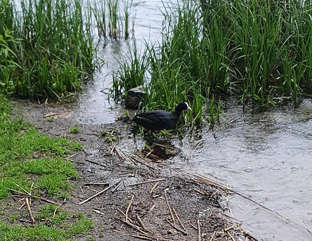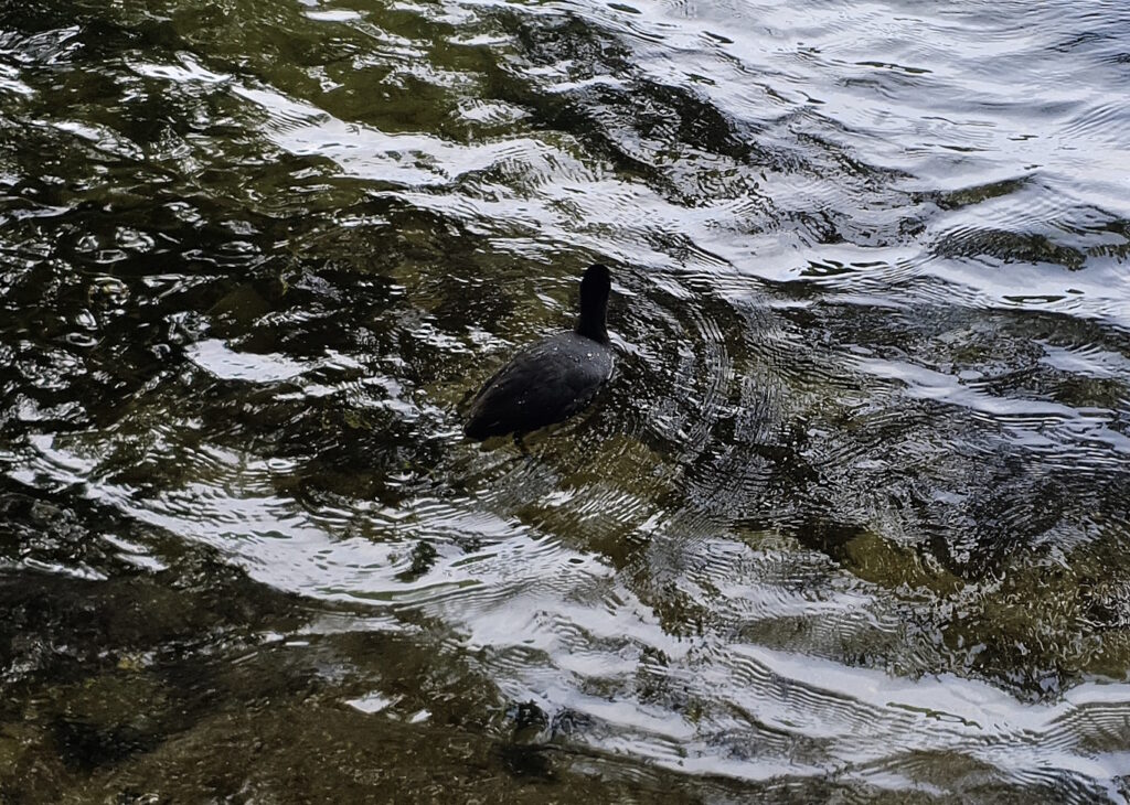 Die letzten Tage wolkenverhangen mit gelegentlichen Schauern. Die Luft- und Wassertemperatur am und im Schlachtensee in der Spitze bei 17 Grad. Am nordwestlichen Ufer hat nach den Stockenten nun auch eine der Blässhuhnfamilien Nachwuchs bekommen. Mit einem kleinen Köpper tauchen die Alten nach Algen, Insekten und Fischen, die Küken zupfen diese dann direkt aus dem Erzeugerschabel – so wie seit Anbeginn des Blässhuhnlebens auf Erden.