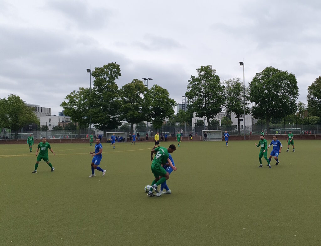 Am Sonntag geh dann auch ich zum Fußball – der SC Union 06 spielt gegen den 1. Traber FC Mariendorf. Zu meiner Freude treffe ich am Spielfeldrand nach langer Zeit mal wieder einen alten Fußballbuddie von mir. Mit dem sah ich schon so manche Partie; er geht auf die 90 zu und kennt wirklich jeden Spieler, Trainer, Linienrichter, Platzwart und Grashalm quer durch die berliner Ligen, da partizipiere ich gern. Im fiesen Starkregen führt Moabit nach herrausragendem Spiel zur Halbzeit 3:0, kommt dann aber durch unkluge Auswechslungen und taktische Neupositionierungen aus dem Fluss und kassiert so zwei Gegentore. Die letzten 25 Minuten (inklusive Nachspielzeit) werden zur Zitterpartie – mit Ach und Krach hält man das 3:2 und die drei Punkte fest. Union punktgleich mit dem FC Amed, der dank der um vier Treffer besseren Tordifferenz auf einem Aufstiegsplatz steht. Noch drei Spieltage, am letzten Union auswärts gegen Amed – es bleibt spannend …
