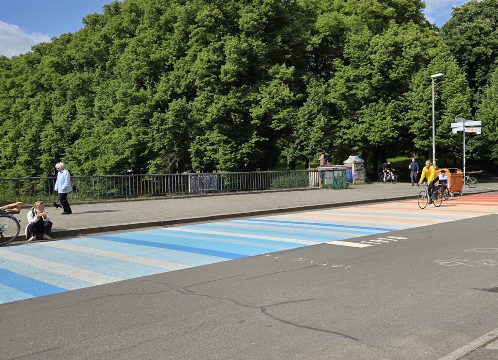 Was da stinkt, ist die Versiegelung der sogenannten Klimastreifen. Die ließ Leipzig 2022, drei Jahre nach der kommunalen „Ausrufung des Klimanotstands“, dort aufmalen, um den Anstieg der globalen Temperaturen zu visualisieren. Ein erster, rund 10.000 Euro teurer Versuch fiel rasch dem Regen und dem Abrieb zum Opfer. Daraufhin wurde im vergangenen Winter alles erneuert und mit Polyurethan beschichtet, eine Chemikalie, die bei längerer Schadstoffausgasung gefährlich werden kann und zudem biologisch nicht abbaubar ist. So eine Klimaschutzkampagne geht offenbar vor Gesundheits- und Umweltschutz.