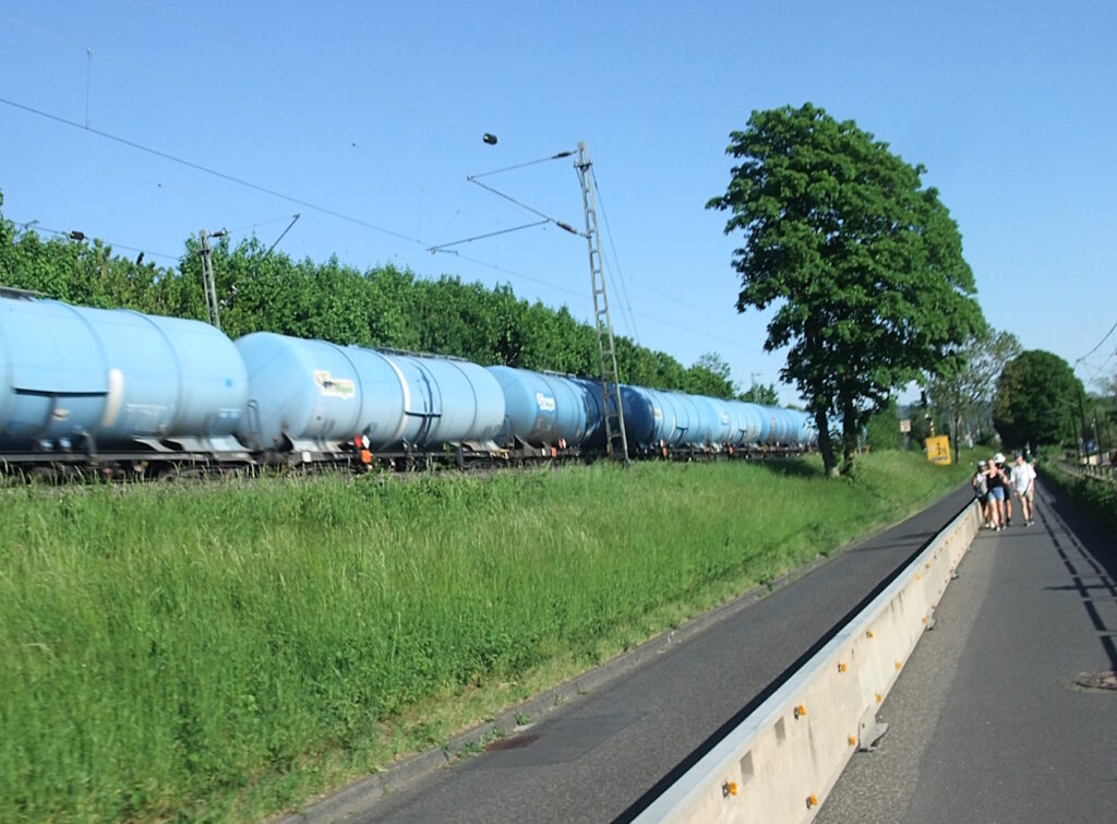 Der Rückweg unter praller Sonne, ich bekomme (vermutlich vom Ozon) zeitweise Kopfschmerzen. In Neuwied eine Boulette mit Senf gegessen (Senf hilft!) und weiter unter den Maiheimkehrern in den Westerwald. Erschöpft gegen 21:30 Uhr zuhause eingetrudelt – das Dorf lag stille.