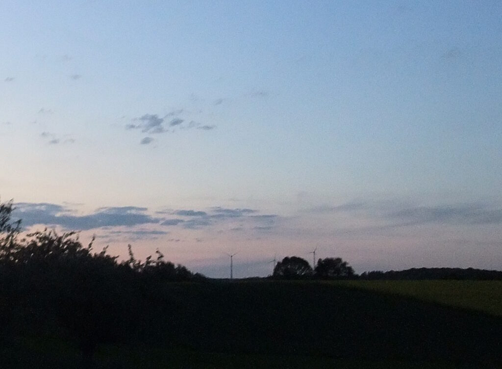 Mild windig, Wolken harmlos, der Regen fällt traditionell auf den Höhen und wird bis morgen weitergezogen sein. Dann ist der große Törn; das Wenige, was zu tun ist, ist getan. Ruhe und Ernährung. Salat und Joghurt nach der Bolognese. Gleichzeitig gespannt und entspannt – ich bin die Strecke schon dreimal gefahren. Um 7 muss ich auf dem Rad sitzen, dann schaff ichs vor der Finsternis zurück.