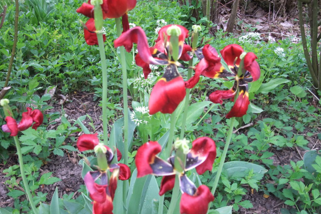 Ein Grauer und milder Morgen. In der Nachbarschaft suchen sich die Amseln jeweils den höchsten verfügbaren Wipfel, um gegeneinander anzusingen. Für uns ist es dann ein Chor. Weitere Regeneration und Gartenpflege. Nach Wochen verblühen jetzt die Tulpen, wobei die Färbung der Blüten immer dichter wird. Das Haus liegt in tiefer Ruhe.