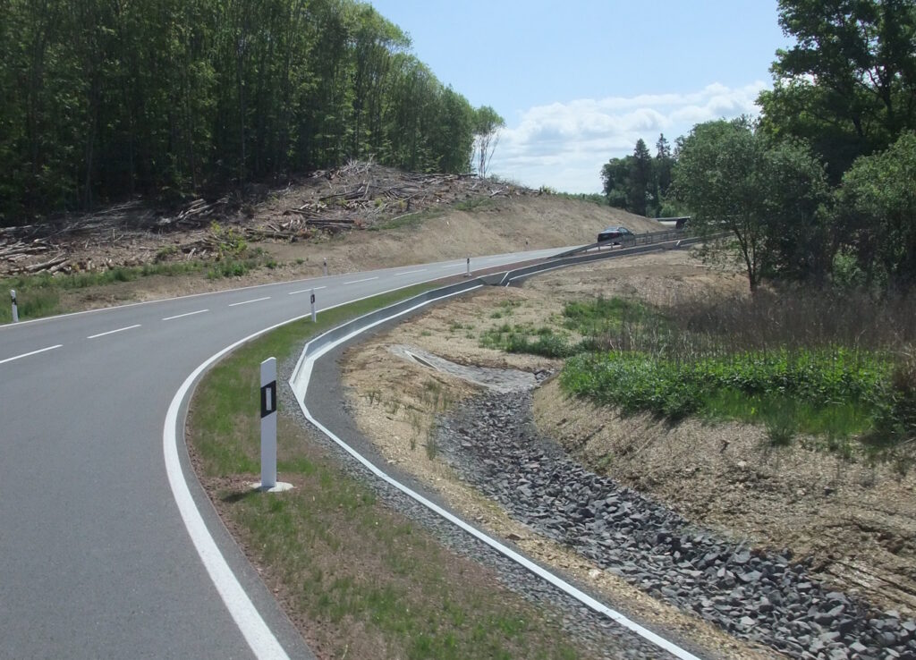Die Umfahrung des Störmthaler Sees ist die ruhigste und gleichzeitig die anspruchsvollste Teilstrecke. Mehrere Anstiege mit 8, 9 oder sogar 11 Prozent Steigung gehen in die Beine und kosten Luft. Dafür ist es wunderbar ruhig. Im Schilfstreifen am Westufer quaken die Frösche. Eine Elster hüpft über den Weg. Schwärme von Mücken tanzen in der warmen Luft und bereiten sich aufs Diner vor. Gerade werden sie aber eher Opfer von mir, indem ich die eine oder andere durch den offenen Mund einatme.