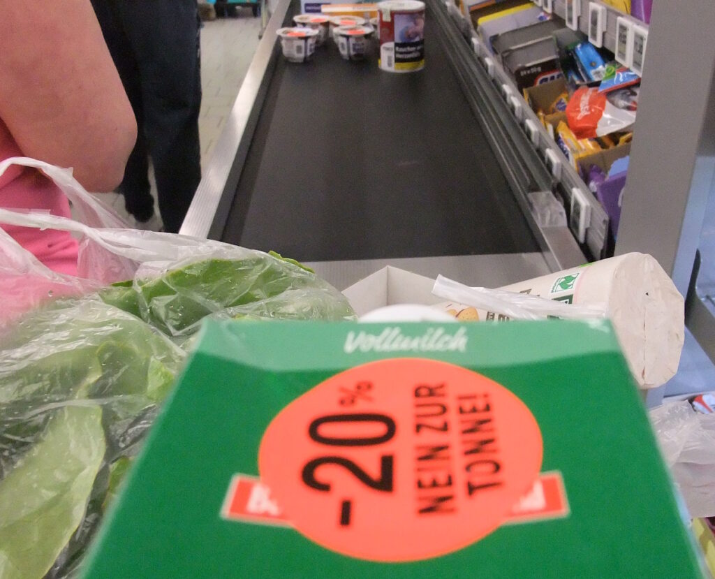 Mit dem Rad ins Städtchen, um frisches Gemüse zu besorgen. Die letzte Monatswoche ist die Woche der orangenen Etiketten auf der Kühlware. Und der Sonderangebote: Joghurt für 40 Cent das Pfund – da freut sich der Familienvater. Und die Kids über die von mir zubereiteten Potatoes mit Baby Blattspinat (: Aldi Bio für 99 Cent!)