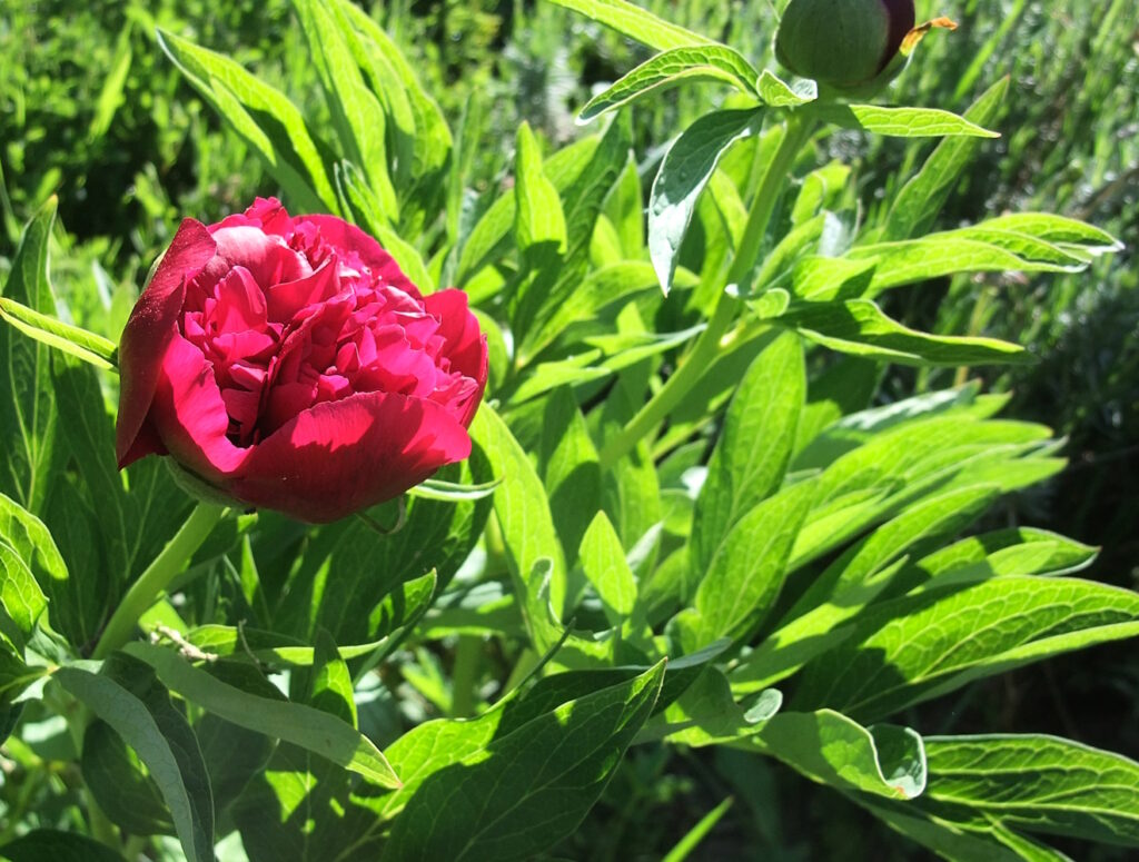 Im letzten Licht des Donnerstages noch eine Hausrunde. Die dritte Pfingstrose steht kurz vor der Entfaltung.