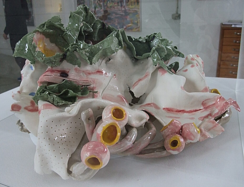 Auf den Straßen fehlen die E-Bike-Kohorten – die mögen es nicht unter 20 Grad und erst recht nicht mit Wind. Kurzbesuch der Galerie auf dem Berge. Die Wienerin Alice Kammerlander zeigt dort gerade echt irre, teilweise papierfeine Keramik. Dazu Gemälde von Dénesh Ghyczy. Die Choreografie einer Ausstellungseröffnung. Pflichtreden (gähn!) als Einstimmung auf die Verkaufsveranstaltung. Das kleine Buffet. Der Wein, der die Stimmung hebt. Das Erwachsenentheater beim Taxieren der Ware. Seitenblicke, man kennt sich. Die Künstler, die betont beiläufig danebenstehen. Der einsetzende Blues, als die letzten Bekannten und Verwandten gegangen sind. Spekulationen, was verkauft wird und was nicht, wer von den Sammlern noch „Platz an der Wand hat“. Immerhin konnte ich mit der Wienerin wunderbar plaudern, was sie vermutlich sehr entspannt hat.