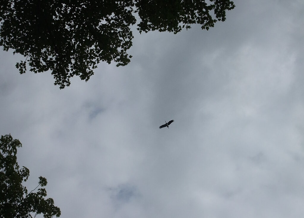 Am Sonntag laufe ich erneut. Die gleiche Strecke. Und wieder ist es am schönsten auf den Waldpfaden. Der Wind weht und lässt die Bäume die Regentropfen abschütteln. Über einer der Brücken kreist ein Raubvogel mit einer beachtlichen Flügelspannweite. Vielleicht ein Habicht oder Bussard? (Was wir alles nicht mehr wissen und unsere Eltern noch wussten …)
