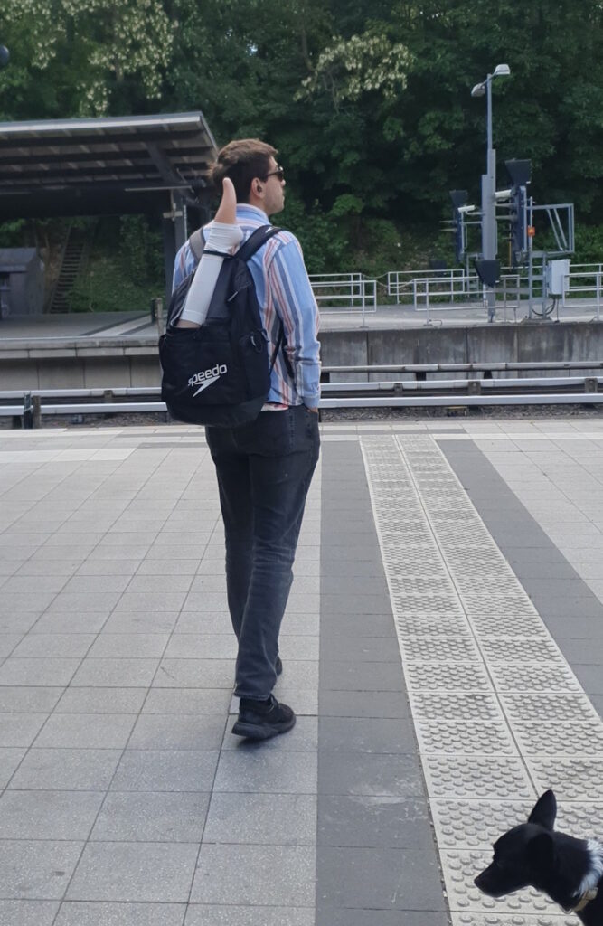 Hinter Bonn dann Richtung Porz. Eine 20 km lange Folge sauberer Siedlungen westdeutscher Machart. Habe starke Sossenheim-Vibes. Vor dem Portal der großflächigen Einrichtung für psychisch Kranke treffe ich einen Schulfreund, der früher ein geweihter Mönch war. Nachdem er das Kloster verließ, bekam er von der Kirche eine journalistische Ausbildung und arbeitet seit zwanzig Jahren beim Domradio des Erzbischofs. Er wurde sehr spät Vater und hat einen jetzt achtjährigen Sohn. Seine Frau ist Gestalttherapeutin. Ich hoffe, auf ein Wiedersehen – unsere zwei Stunden waren einfach zu kurz.