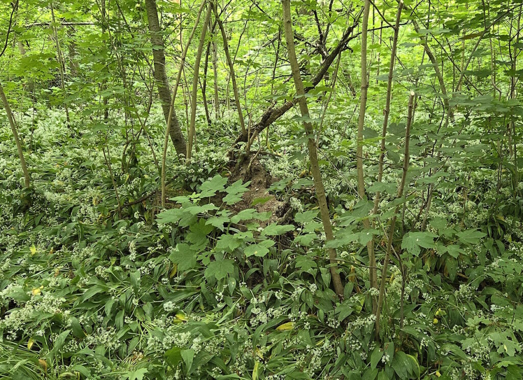 Unten stehen kleine Maiglöckchenwälder. Es ist ein kleiner Raum, oben zu. Der Hall ist grossartig und wie ich mich drehe, weitergehe ist es ein Vorgelstimmenkunstkopfhörspiel. Weiter hinten, wo der Hochwald beginnt, die Abstände grösser sind und der Himmel sichtbar, klingts anders. Weniger gross, stiller.