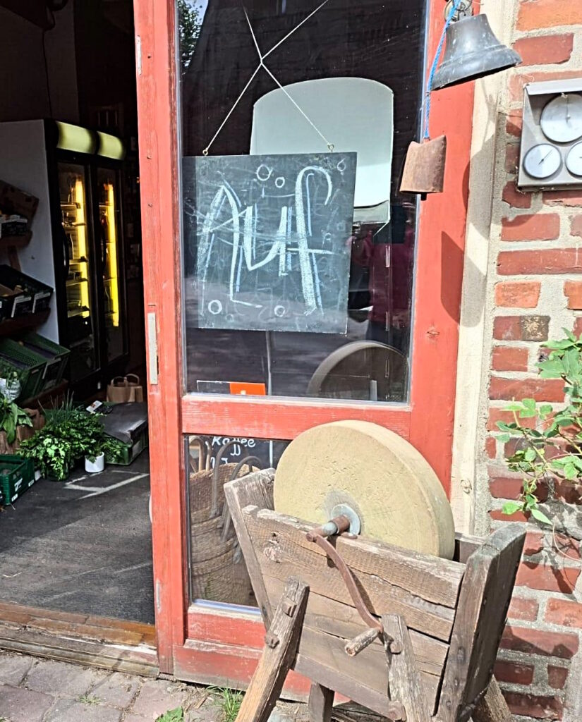 Wir genossen wirklich hervorragende, frische Johannibeerstorte. Dazu trank ich einen sehr guten entkoffeinierten Kaffee. Danach kauften wir Schwarzbrot aus Roggenmehl und Dinkelmehl sowie Kalbsleberwurst. Die schmeckt so, wie ich sie noch aus meiner Kindheit in Erinnerung habe. Man riecht, dass das Fleisch frisch geschlachtet ist, ich komm ja auch vom Hof. Die machen das da alles selbst – so wie wir früher auch. Selbst wir Kinder mussten damals immer wieder mithelfen, ob am Schlachtetag beim Umrühren des Blutes, beim Rübenziehen oder dem Entfernen der Keime von den Kartoffeln, die dann in den Futtertrögen gedämpft wurden.