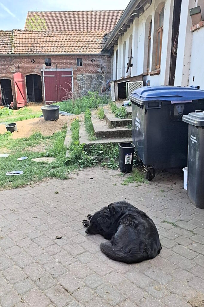 Der Hofhund hat uns überhaupt nicht beachtet, erst als ein anderer Hund kam und bellte, wurde er plötzlich munter und sprang auf.