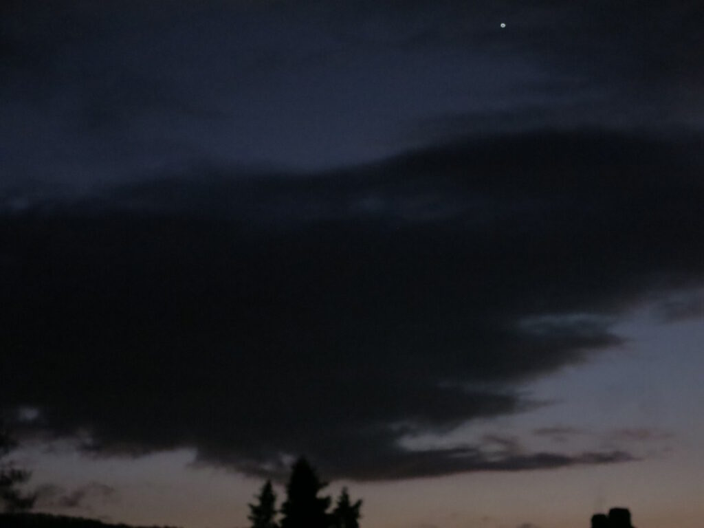 18h35 mit dem Doppelglas einen Abschiedsgruß an Merkur. Dieser fast am gleichen Ort – die Überrschung stand in der Nähe des Zenits Südsüdost: ein weiterer Planet. Für Sterne ist es noch zu hell. Mars über dem Turmhahn, Jupiter links neben dem spitzen Dach. Mars im Vergleich deutlich kleiner und eindeutig orange – also Neptun oder Saturn.
