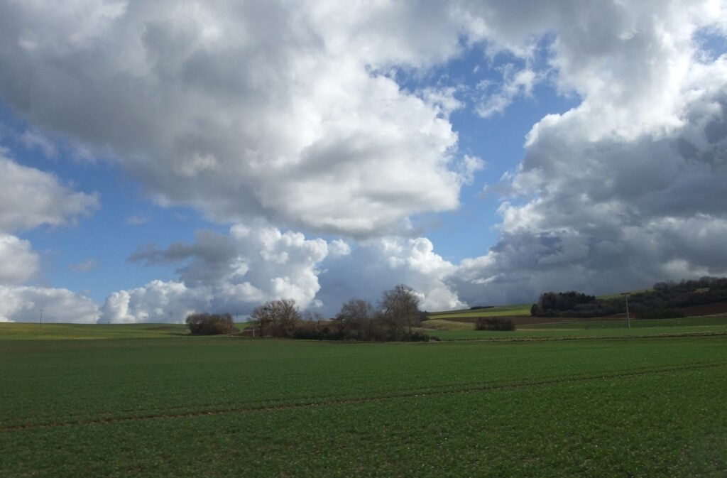 Ganz schlapp auf dem blauen Rad ohne Schutzbleche, vermutlich einer der vielen Infekte als U-Boot (und Folge der Jahre, die man mitschleppt). Also nur die Minimalstrecke. Sonnig, frisch. Was für ein Himmel!