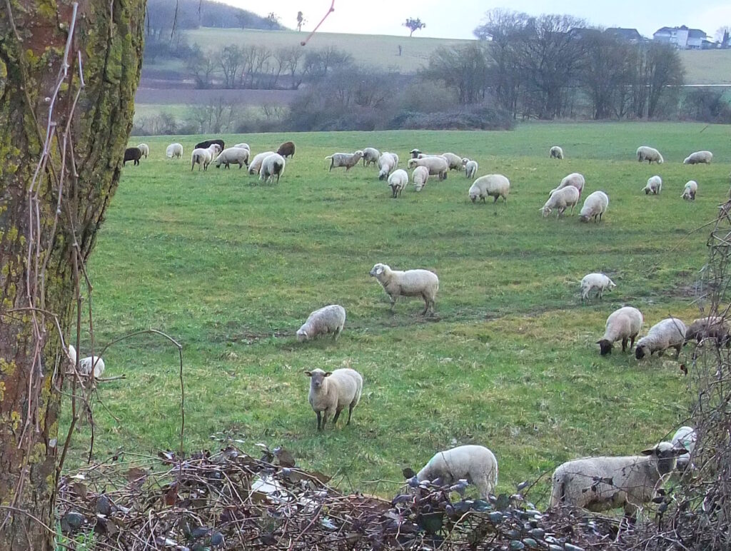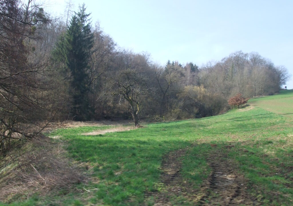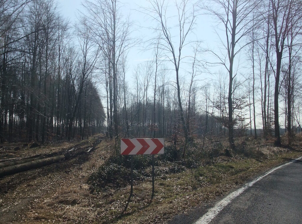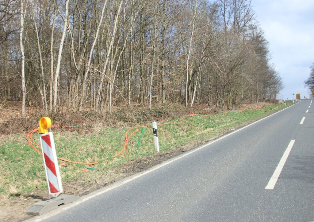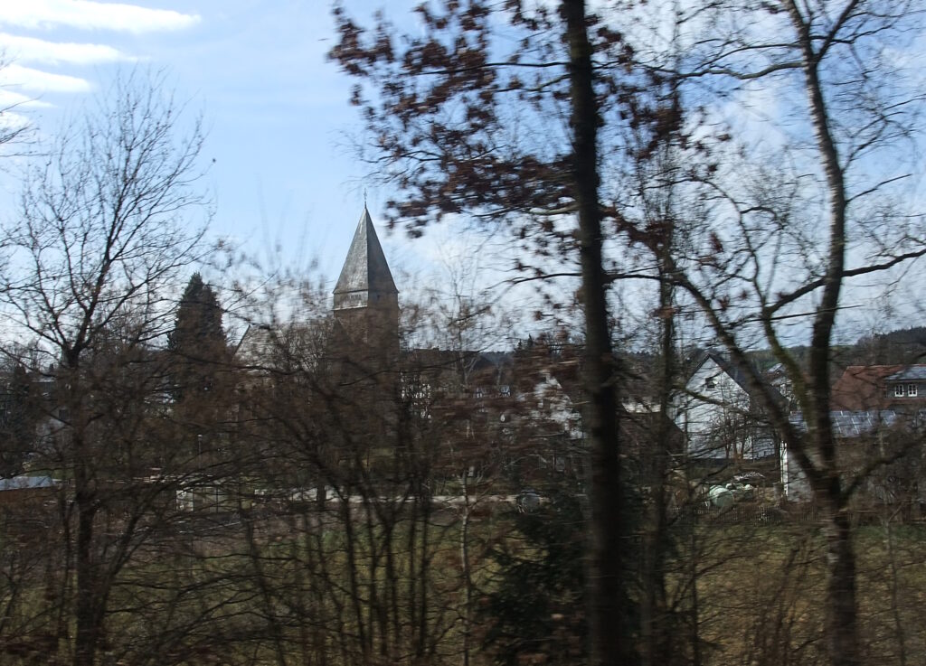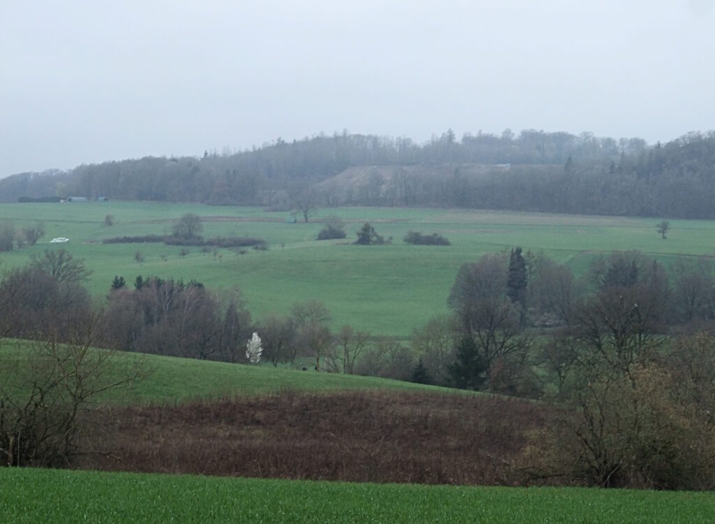 Parallel zu meiner Route verläuft die vierspurige B49, von der wohl ein Teil gesperrt war – plötzlich schossen Wagenkolonnen an mir vorbei; wo sonst ländliche Ruhe herrscht, wurde ich angehupt wie nie; nach 5 Kilometern war der Spuk vorbei. Entlang der Strecke am Waldrand bunte Rohre: Das Glasfasernetz wird in die rückständigen Regionen gezogen. In der Umgebung nach wie vor riesige Mengen Holz, die davongebracht werden – manche Kommune scheint sich beeilt zu haben, kaum zwanzigährige Bäume zu fällen. Am Abend grüßte mich, bepudert von dünnen Schleierwolken, der Vollmond, am Morgen zuvor sah ich ihn noch angeschnittenen untergehen.