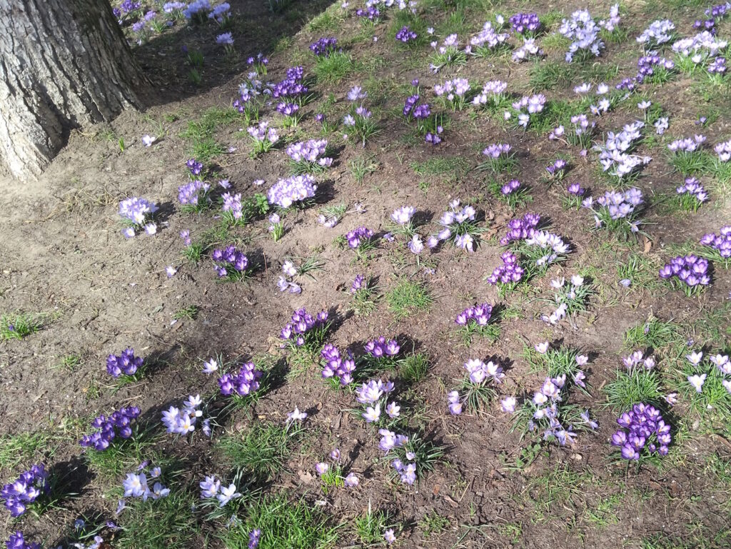 Wunderbarer Morgenhimmel, leicht frisch, aber alles mit deutlichem Frühlingsdrall. Die Birken bereiten sich gerade vor. Eine letzte lilane Hyazinthe auf ihrem Weg zur Sonne, die Tulpen in den Startlöchern der Supermarktkassen. Papier sortiert, Briefe in den P-Korb.