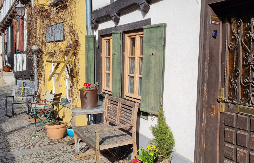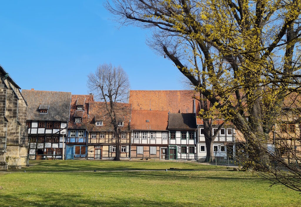 Ansonsten: Enge Straßen, viel Fachwerk, einzelne Blumentöpfe mit Frühblühern und am Lauf der Bode Winterlinge, Krokusse und die ersten Spitzen vom Bärlauch.