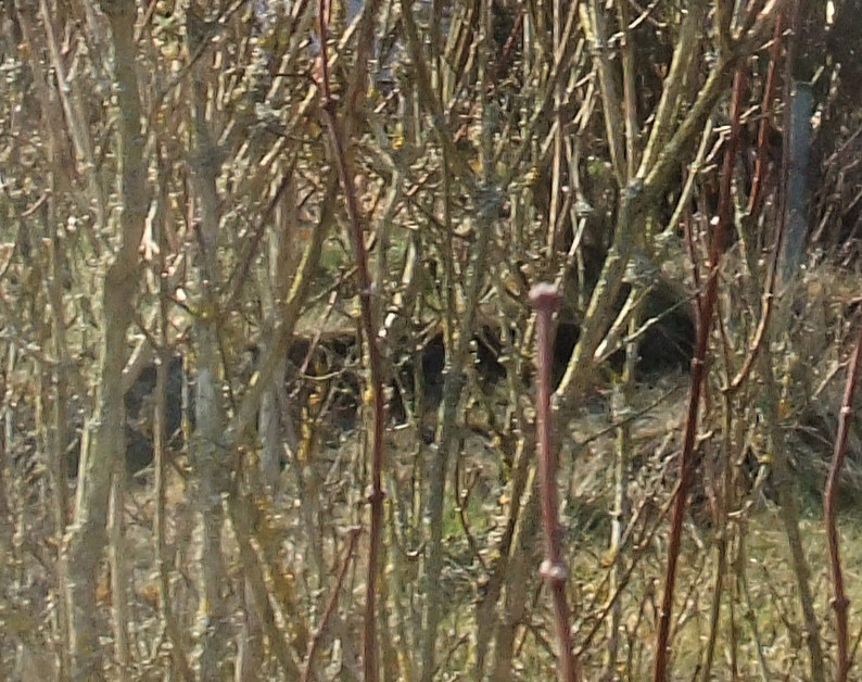 Eiskalter Tagesbeginn mit Frost und scharfem Ost. Morgenkonzert ab 5:30 Uhr. Klarer blauer Himmel. Hochdruckwetter. Warmer Mittag. Wind ribbelt die Wasserfläche auf. Das Paar Laubsänger weiterhin am Uferrand aktiv. Bewegen sich unentwegt und schnell. Flattern kurz in der Luft auf, hüpfen von Zweig zu Zweig. Es müssen also schon winzige Fliegen da sein, denen sie nachstellen. Den Taucher sah ich nicht wieder, auch keinen Eisvogel. Dafür kürzlich meinen Lieblingsvogel: den Kolkraben. Ein schweres, älteres Exemplar. Saß gleich neben der Landstraße auf einem Baum. Da wir etliche Basaltkuppen haben, sind die hier nicht so selten. Gut erkennbar am Flug und gutturalen Klang ihres Rufs.