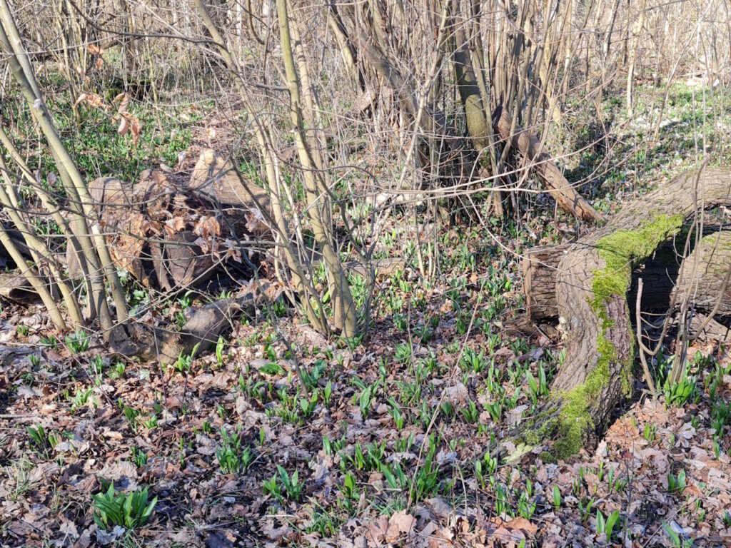 Man liest, dass die Bärlauchzwiebeln insbesondere im russischen Raum sehr begehrt sind, was das Ausgraben wohl recht lukrativ macht. Was ich mich frage: Über welche Mengen reden wir? Eine Bärlauchzwiebel ist sicher kleiner als die Gemüsezwiebel. Nehmen wir mal an, sie wiegt 25 Gramm. Dann wären 40 Zwiebeln ein Kilo, und 4.000 Zwiebeln wären 100 Kilo. Der Bärlauch wächst im Auwald ziemlich eng beieinander, ich schätze es auf 25 bis 50 Pflanzen je Quadratmeter. Sagen wir mal, es sind 20, weil ja oft auch Bäume oder Baumstümpfe den Platz begrenzen. Dann wären für 4.000 Zwiebeln 200 Quadratmeter zu beräumen – das sind grob 14 mal 14 Meter. Okay, der Auwald hat eine Fläche von 5.900 ha (590.000 m²) – und bestimmt die Hälfte ist im Frühjahr mit Bärlauch bedeckt.