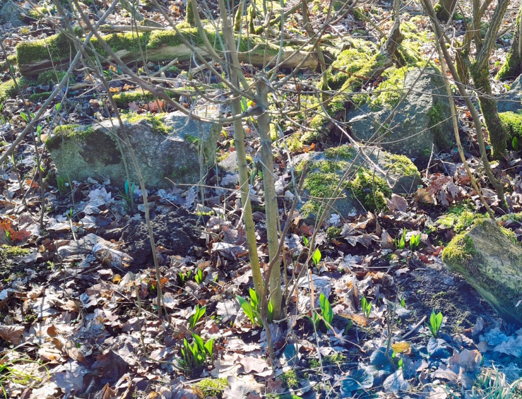 Es ist März. Trotz kalter Nächte mit Frost zeigt sich frisches Grün. Die ersten Frühblüher sind bereits verblüht, die Schneeglöckchen weichen den Narzissen und auch die jungen Tulpen strecken ihre Blätter der Sonne entgegen.