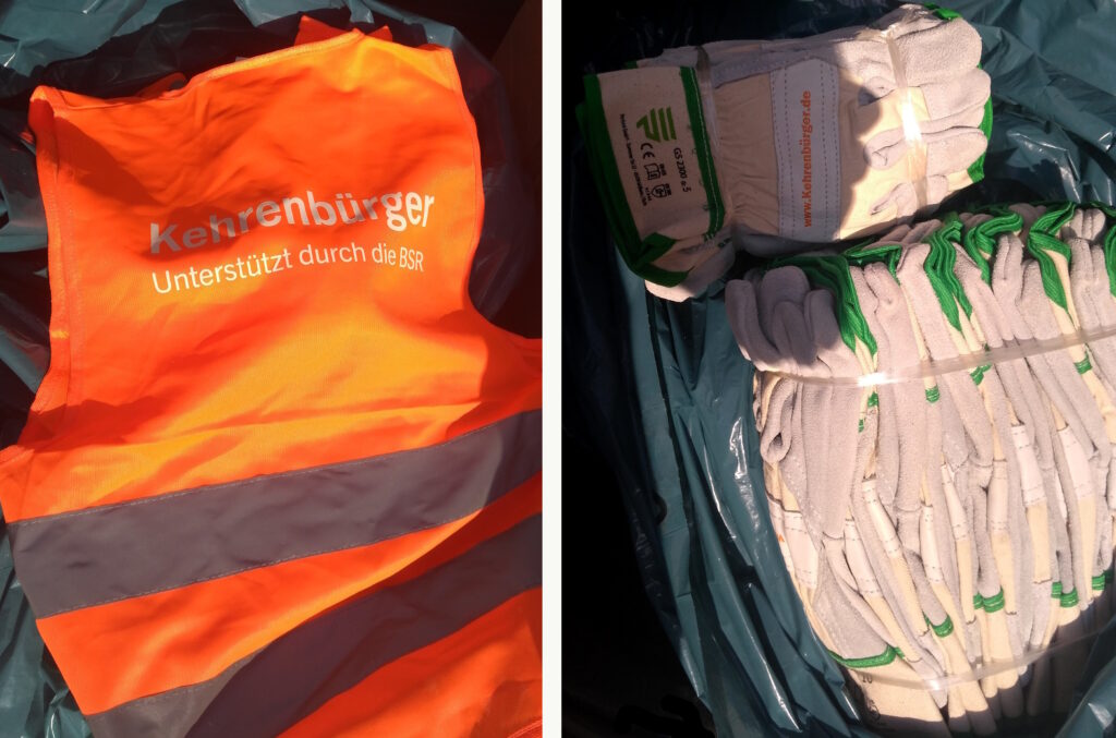 Viele wundern sich, dass wir kein Verein sind und das vollkommen ohne Fördergeld organisiert haben – scheint wohl inzwischen ne Seltenheit zu sein. (Alles, was man in den letzten Jahren unter „Maßnahmen gegen den Klimawandel“ labeln konnte, hatte sehr gute Chance auf staatliche Kohle, so etwas verführt dann, ist ja klar.) Wobei es heute durchaus eine Kooperation gab: die Berliner Stadtreinigung stellte Geräte, Handschuhe Westen und Mülläcke und holt diese auch wieder von den vereinbarten Plätzen ab (alles unkompliziert organisiert – nennt sich Kehrenbürger).