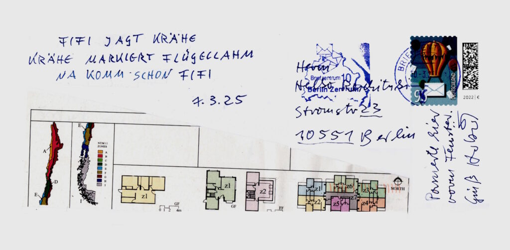 Zuhause eine E-Mail: Ich mach Mitte März bei einer Ausstellung in Schöneberg mit, gute Galerie, bislang kein persönlicher Kontakt, ist Mailart, also schickte ich denen einfach ne bemalte Postkarte mit ein paar Zeilen plus Unterschrift. Daraufhin haben die mich im Internet gesucht, aber nüscht gefunden, außer eine mir kaum erinnerliche Gruppenausstellung. Über deren Galeristen bekamen sie Kontakt zu einem befreundeten Zeitschriftenredakteur, der ihnen dann meine Mailadresse gab. An diese schrieben sie nun, dass sie an meiner „subversiven Haltung gegenüber dem Verwertungsdruck aus dem Kunstmarkt“ interessiert seien. Nur weil du nicht im www. zu finden bist, biste subversiv – so einfach geht das heutzutage.