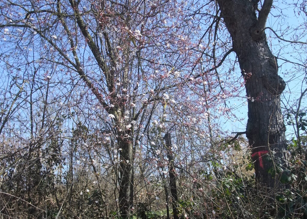An der Bahnbrücke über die Lahn einen großen schwarzen Vogel beobachtet – wahrscheinlich ein Prachttaucher. Hielt ihn vom Flug her zunächst für einen Kormoran, ist aber wohl keiner, die kenne ich. Muss mal mein kleines Fernglas einstecken. Ein Schwan beschwerte sich lautstark, so dass der „Taucher“ wieder wegflog. Neue Graffitis am Tonzug. Die jungen Ukrainer, die jetzt langsam erwachsen sind und bei Aldi mit ihren Freundinnen einkaufen. Aus der Nachbarschaft russische Pfannkuchen für die jungen Damen, die sich bestens verstehen. Auf der Sonnenwiese Aufbau eines kleinen Pferdestalls: das erste Mal in diesem Jahr draussen spielen. Sternanisblüte und Prunus im Lahntal. Die UV-Intensität ist gewaltig. Ultratransparente Farben. Die Weiden übernehmen. Es geht voran.