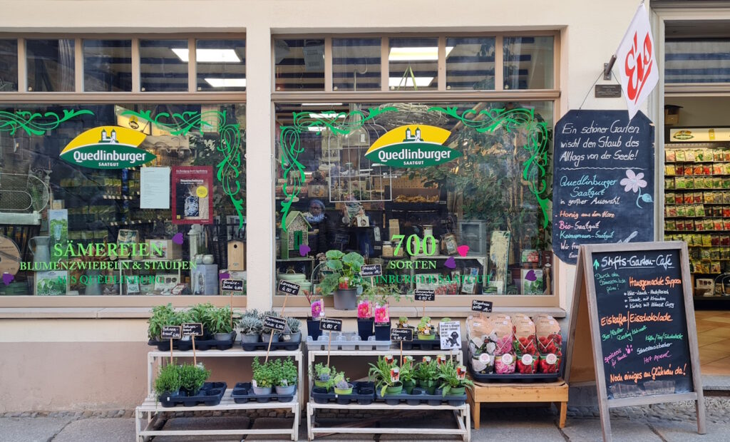 Übrigens: Nicht nur wegen der Fachwerkhäuser, der Kirchen, dem Schloss und dem Domschatz ist Quedlinburg berühmt, sondern auch für die Herstellung von Saatgut. Im 18. und 19. Jahrhundert verdiente man soviel Geld mit den Samen von Futter- und Zuckerrüben, dass einer der Firmeninhaber seinen Angestellten um 1900 eine eigene Kirche und sogar eine Rentenversicherung spendiert habe, erzählte der alte Quedlinburger. Inzwischen sei die Kirche aber entweiht und ihr imposanter Kronleuchter hänge jetzt hier in der Marktkirche. Auf dem Dachboden zeigte er uns stolz die Aufhängung. Wir sahen dann später auch noch die Häuser, die besagter Saatgutfabrikant ebenso für seine Arbeiter bauen ließ: Geräumig und mit Wasserleitungen, drumherum große Grünflächen.