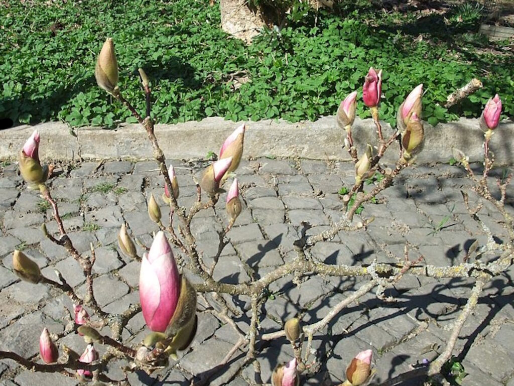 Die Wolken lockern sich und gerade kommt ne Fuhre Ligeti. Unsere Hasen haben jetzt weiteres Grün, das rund um die Magnolien einen Teppich bildet. Frische Vitamine für ein langes Leben.