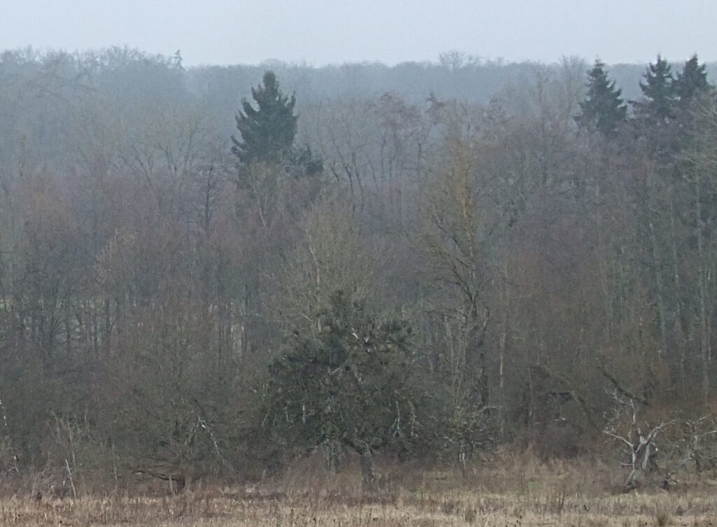 Über Nacht war es nach leichtem, zarten Regenfall ganz dunstig geworden. Plus 6, das ist gut fürs Rad und seinen Piloten. Die Tierwelt lebt auf. Nach wie vor interessant: dieser schwarmartige Einfall der Finken in die hohe Birke, vermutlich Besuch aus dem Wald. Die gelben Meisenpunkte deutlich vernehmbar. Der erste Hausrotschwanz des Jahres im Feld!