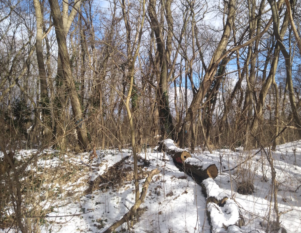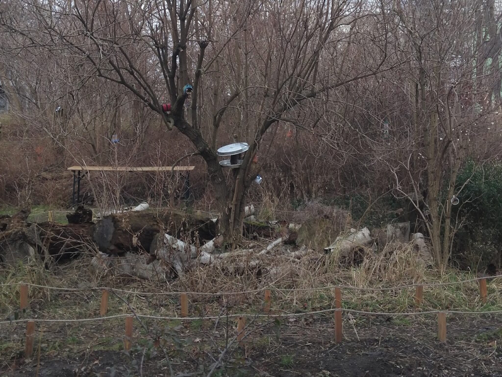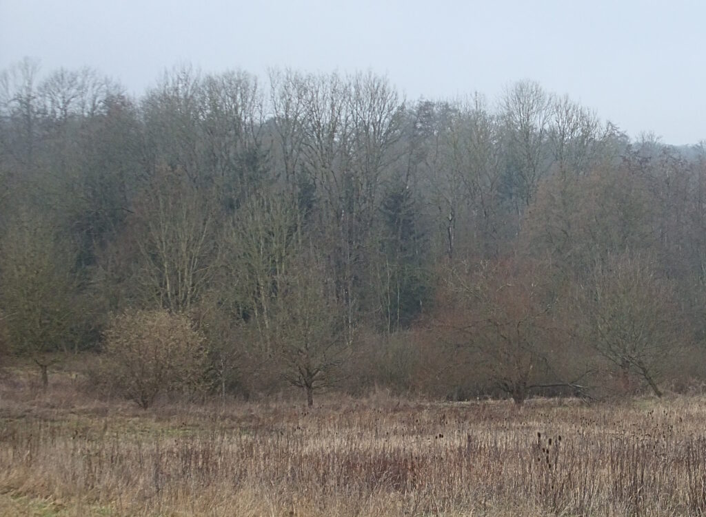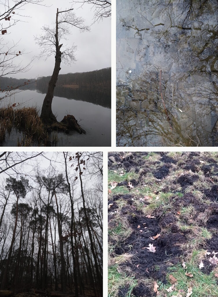 Auf meinem weiteren Weg Richtung S-Bahnhof Nikolassee war die Eiszeitniederung „Rehwiese“ großflächig von den ortsbekannten Wildschweinen zerwühlt. Ich sah dort aber leider bislang nie welche, im vergangenen Sommer kamen sie mir an einem frühen Morgen immerhin schon einmal zu Gehör. Vielleicht ergibt sich ja in diesem Jahr auch eine Inaugenscheinnahme.