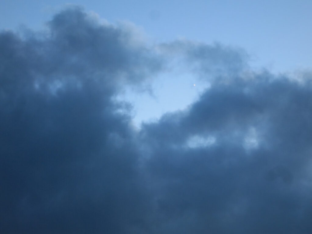 Ab 19h14 der Himmel bewölkt – das wars dann für heute. Aber selbst bei optimaler Sicht wird der sensationelle Merkur nur ein mit Mühe zu erkennender Punkt am Firmament bleiben.