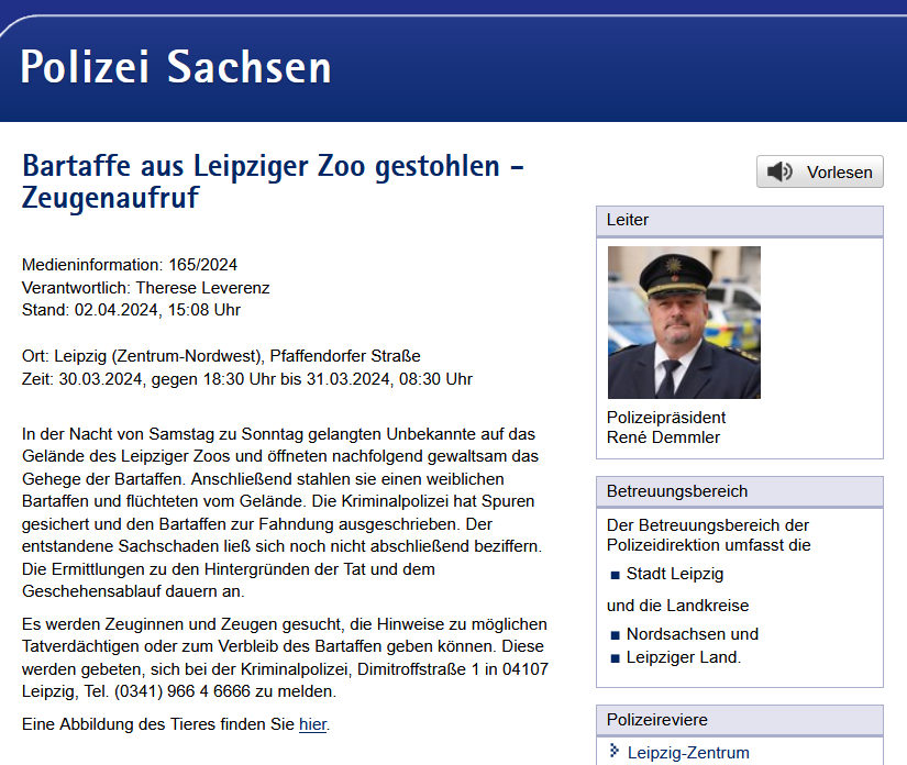 +++ Affenentführung in Leipzig – eine Zusammenfassung +++