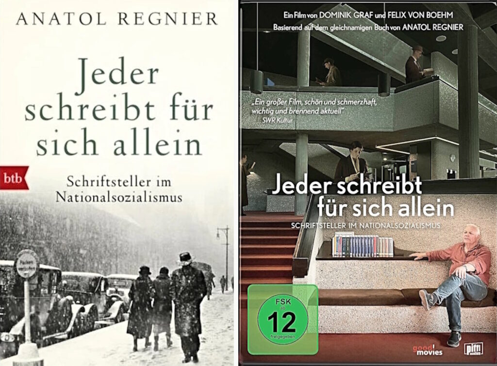 Abends weiter in Dominik Grafs knapp dreistündiger Dokumentation „Jeder schreibt für sich allein“, die vom gleichnamigen Buch Anatol Regniers, der im Film ausführlich zu Wort kommt, angeregt wurde. Es geht um Schriftsteller, die in der Nazizeit nicht emigrierten: Hans Fallada, Ina Seidel, Hanns Johst, Will Versper, Jochen Klepper. Für mich viel Neues über Kästner und Benn. Hochinteressant! Die Flucht aufs Land und die Flucht aus dem Land, der Kampfbegriff „innere Emigration“, die Auseinandersetzungen mit Thomas Mann. Die feine Unterscheidung von Patriot, Nationalist, Nationalsozialist und Nazi. Die nicht oft genug zu wiederholende Erkenntnis, dass sich niemand seiner selbst sicher sein kann, weil in jedemvon uns ein Unmensch schlummert, der unter gewissen Umständen zum Vorschein kommt. Wie nahezu alles von Graf ist das packend und differenziert erzählt und erweitert die Wahrnehmungs- und Denkhorizonte ungemein.