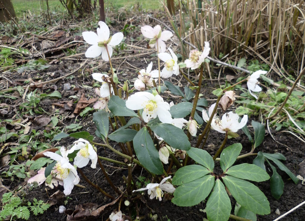 Ich komme gerade aus der Werkstatt – das schöne Wetter war zu verführerisch. Ums Haus herum blüht es. Ich habe u.a. Winterlinge, Schneeglöckchen, Frühlingskrokus, Christrosen und die Stinkende Nieswurz angesiedelt (die letzten Beiden stammen aus der Familie der Hahnenfußgewächse, Gattung Helleborus). Hoffentlich nehmen die radikal zurückgeschnittenen Schwarzen Johannisbeeren keinen Schaden, keine Ahnung, ob es noch unter -4°C werden. Nun wieder an die Arbeit, auch im Winter ist viel zu tun. Und wenn abends alles erledigt ist, freu ich mich auf mein Bett mit dem Untertan Erde.