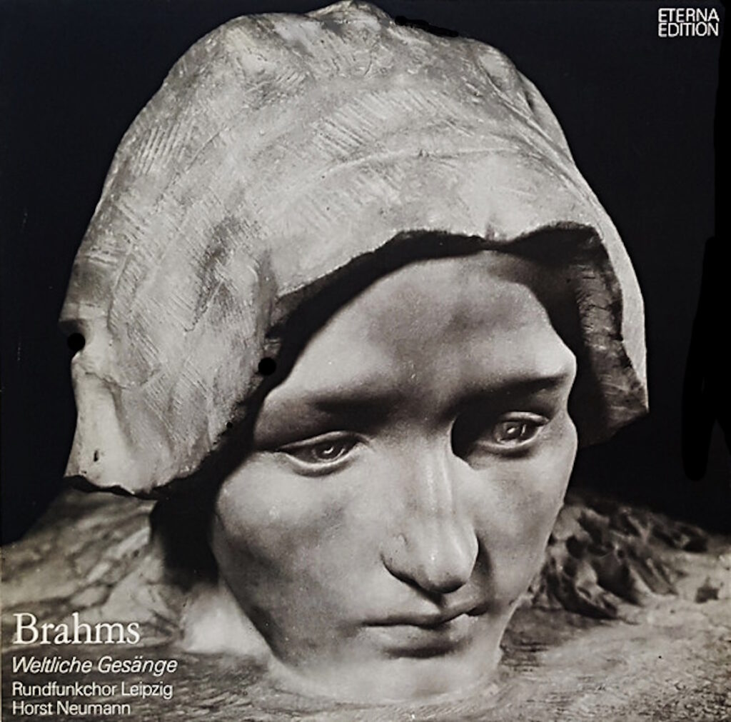 Im Musik-Verschenkregal gefunden: Brahms „Weltliche Gesänge“ – der Rundfunkchor Leipzig mit der Harfenistin Margarethe Kluvetasch und den Hornisten Waldemar Markus und Günther Opitz unter der Leitung von Horst Neumann, aufgenommen im Juni 1974 im Studio Versöhnungskirche Leipzig für Eterna. Vertonungen von Texten von Paul Heyse, Wilhelm Müller, Klaus Groth, Clemens Brentano, Joseph von Eichendorff, Jürgen Wenzig, Friedrich Rückert, Max Kalbeck und Friedrich Ruperti. Großartig! Luftig und leicht, jedoch nicht bemüht volkschorlocker, aber auch nicht verkrampft um DIE GROSSE KUNST bemüht. Darin waren die Leipziger ja immer wieder gut. Das wird der perfekte Soundtrack für all das Kommende – Brahmslieder pfeifend werden wir den Bärlauch pflücken, die Brombeeren und Birnen …