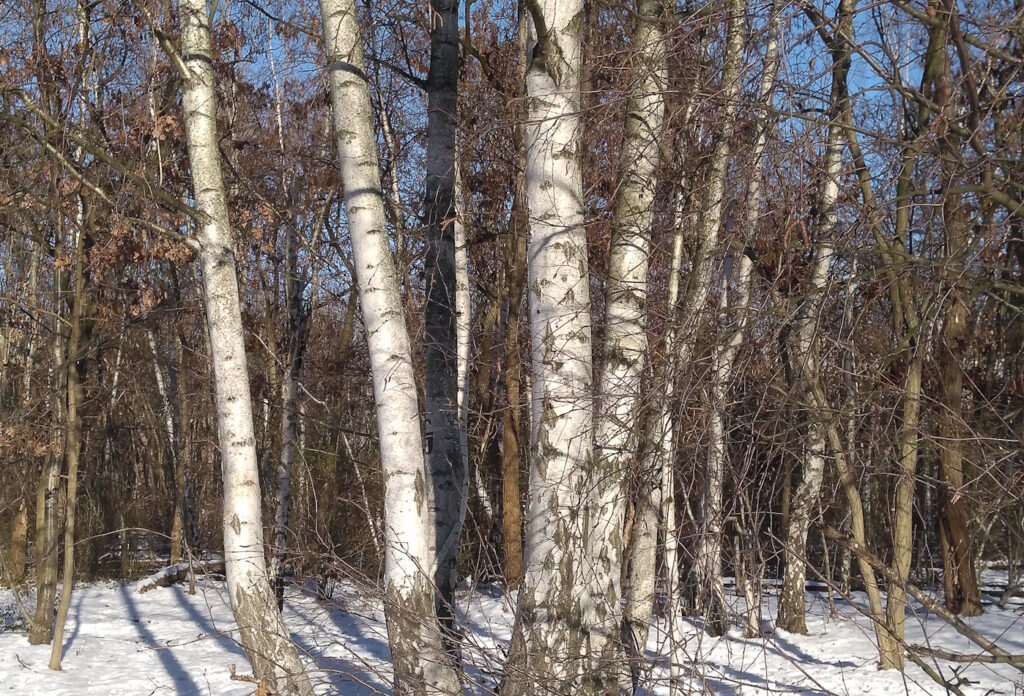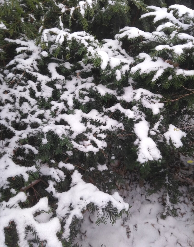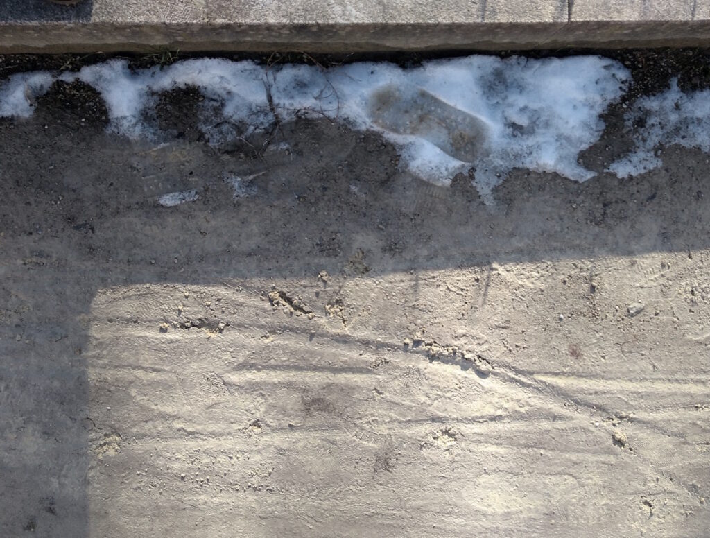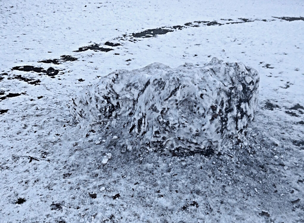 Unter einem Wolkenhimmel mit gelegentlichen Sonnenstrahllücken taut langsam die nunmehr graue Schneedecke. Ab und an fallen ein paar Flocken, die es kaum zur Erde schaffen.