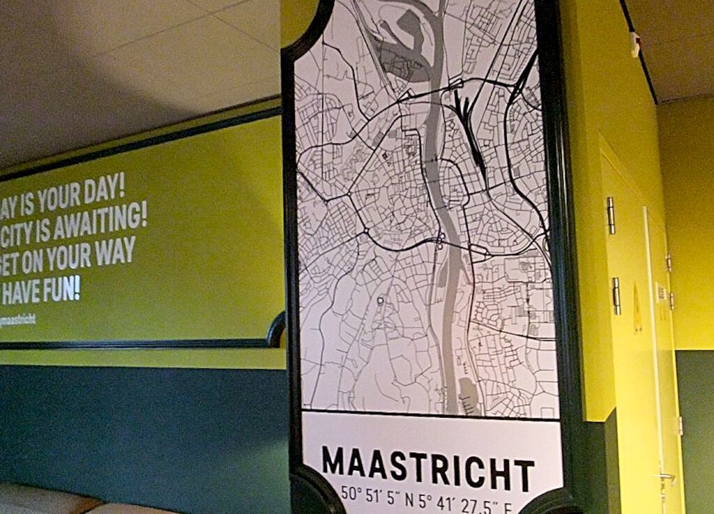 Holland? Abseits gewisser grüner Nischen ein ziemlich ödes Land. Dazwischen kleine, alte Städte, manchmal ein schöner Kirchturm. Agrobusiness auf den Feldern: Champignons, Erdbeeren und andere Unterglaspflanzungen, die große Tanks und Silos erfordern. Der Geruch von Schweinezucht. Zwischen den Überlaufpoldern der Maas und diversen Kieswerken hat sich eine kleine Einkaufsstadt angesiedelt, die sich euphemistisch Maasmechelen Village nennt. Ein potemkinsches Musterdorf von einigen hundert Metern Länge, gebaut aus Fertigteilen, vermietet an Markenartikler. Man kommt nicht per Fahrrad hin, so blieb mir der nähere Anblick erspart. Die Altstadt von Maastricht dagegen wie Champagner: Pflasterstein, Sandstein, Backstein, Radfahrer, Fußgänger, bunt, wuselig, jung. Deutschlands westlicher Rand seit Jahren unverändert: die mühsam konvertierten Kohlebergbaustädtchen, in denen auffallend viele auf den Bus warteten, die suburbaniserten Dörfer. Lebende Ruinen.