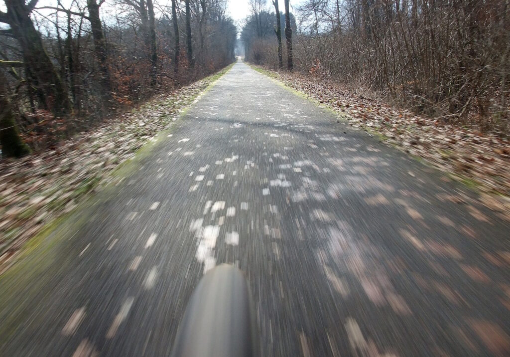 Oben auf dem Rist habe ich meine Flachstrecke fast verdoppelt. Ein anspruchsvolles Training, das aufgegangen ist. Die letzte Partie wird mit schwerem Gang gefahren, die vorigen in kleinen, die ich heftig und ohne Pausen durchkurbele. Der runde Tritt ist eine komplexe Sache, das darf man gern sagen. Eine Art Micromanagement der Muskeln: Es können immer wieder verschiedene Partien belastet werden, mal wird mehr gezogen, mal mehr gedrückt und geschoben. Es ist ein völliger Irrtum, zu glauben, Radrennfahrer säßen in einer Postion und träten stur im Takt – nach zehn Minuten würden sie völlig verkrampfen; von außen sieht man es kaum, im Sattel spürt man es dagegen umso mehr. Herrlich müde Muskeln nachher.