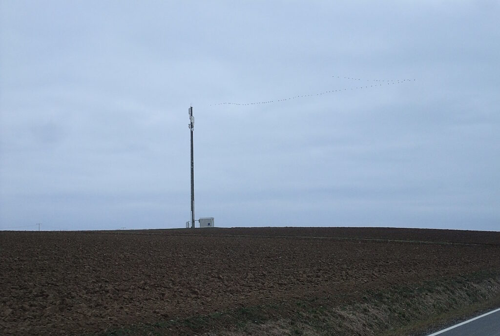 Gestern mit der Frankfurter Radgruppe auf 200-Kilometer-Fahrt zum Hoherodskopf, dem Kulminantionspunkt vom Vogelsbergmassiv im Naturpark der alten Vulkanregion. Dieser Kopf wird gekrönt von einem 144 Meter hohen Fernmeldeturm, dessen Beton inzwischen reichlich schimmelig aussieht. Gegen Eissschlag ist ein gewaltige Stahlnetz über den Wald gespannt. Frankfurt in den Pastelltönen des Samstagmorgens und nahezu ohne Verkehr – ein fast poetischer Anblick. Unsere Tour führt an den Lebensorten von Guntram Vesper und René Pollesch vorbei, den wir in Sichtweite seiner Geburtsstadt Dorheim lautstark lobpreisen. Rast im Supermarkt in Lauterbach. Einem der Radfreunde und mir fallen die vielen älteren Leute auf, die sich so seltsam roboterhaft bewegen – Demente. Der schwalmtaler Bäcker bedruckt die Papierservietten noch in Sütterlin. Ein Mitfahrer berichtet von seiner Tour durch Kirgistan – die Talsohle liegt dort bei 800 Metern, in der Höhe sorgte die UV-Strahlung dafür, dass die Solarzellen am Navigationsgerät unentleerbar wurden. Das konnte uns glücklicherweise nicht passieren. Eine rundum gelungene Fahrt von Sonnenaufgang bis nach Sonnenuntergang. Wie eindrucksvoll das Hinterland in seiner absoluten Stille ist.