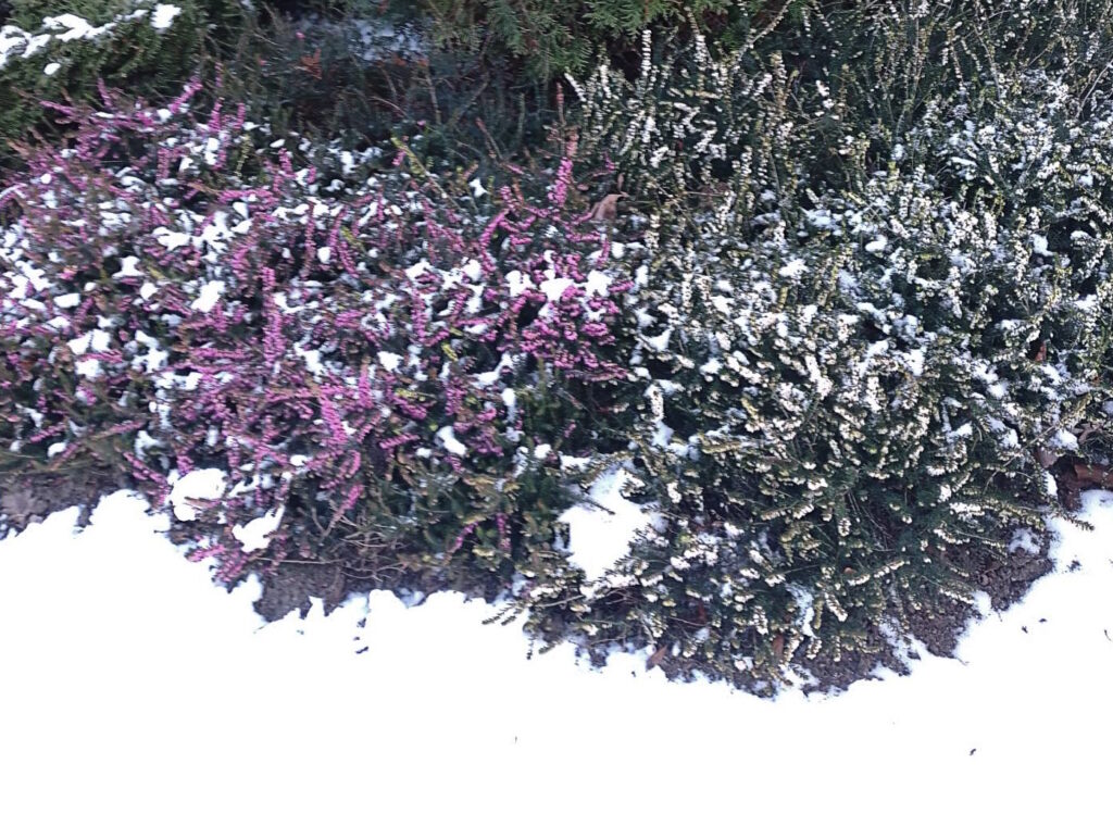 Heute war ich anderthalb Stunden draußen! Das ist wirklich viel für meine Verhältnisse. Bei Schnee und herrlichem Sonnenschein ging ich eine Runde durch die Stadt, zumindest den Teil in der Nähe. Zum Eldearm hinter der Kulturmühle, dann bei Tischler Grohmann vorbei. Das Holz hinter der Turnhalle gehört nicht der Schule, sondern dem Privatmann, der da seit drei Jahren sein Haus baut. In der Blutstraße habe ich bei Ahnsorge Totenblumen gekauft, es ist schon wieder eine Bekannte gestorben. Immerzu stirbt jemand. Dann bin ich vom Rathaus zum Platz der Arbeit gegangen, der ja jetzt Moltkeplatz heißt, ich sag aber immer noch die alten Namen. An der Sparkasse habe ich einen Geburtstagsbrief eingesteckt. Das ist der einzige Briefkasten, den sie uns hier gelassen haben, alle anderen sind weg. Das Heidekraut entdeckte ich in der Cordesiusstraße, gleich um die Ecke. Wunderschön! Es war auch nicht mehr so glatt wie gestern, sondern alles gefegt und gestreut. Vom Westwind war die Luft ganz mild, die Kälte aus Sibirien ist nun wieder weg. Gott sei Dank! Es war trotzdem sehr kühl. Weil an den Rollatorgriffen die Finger so schnell kalt werden, hab ich zwei paar Handschuhe übereinander gezogen. Aber ich frier dann immer noch, vielleicht ist das in meinem Alter auch normal. Man darf nicht vergessen, dass ich fast 80 bin!