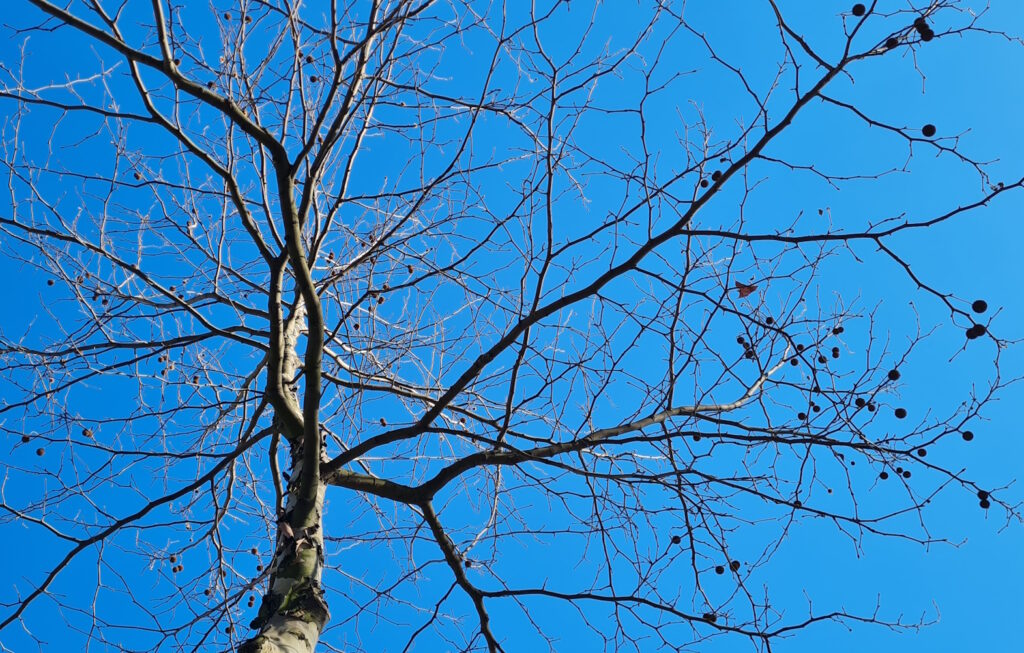 Heute um die null Grad Celsius bei klarer Luft. Die Knallerbsen an den kahlen Schneebeerensträuchern im Volkspark Wilmersdorf, wo ich im „Haus der Nachbarschaft“ Tischtennis spiele, bilden im strahlenden Sonnenschein einen scharfen, schönen Kontrast.