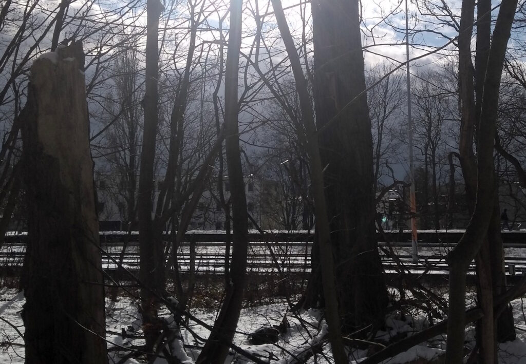 Ansonsten viel Tristesse. Mich deprimieren diese Stadtteilränder ja immer etwas, das Graubetonige, die Baracken, in denen irgendetwas zertifiziert wird, die Jobcenterarbeitszwangvereine, die Ölflecken in den Schrauberhöfen, die Schaumzuckermäusemanufakturen und Kunstblutbuden. Umso wichtiger die Waldgänge davor und danach.